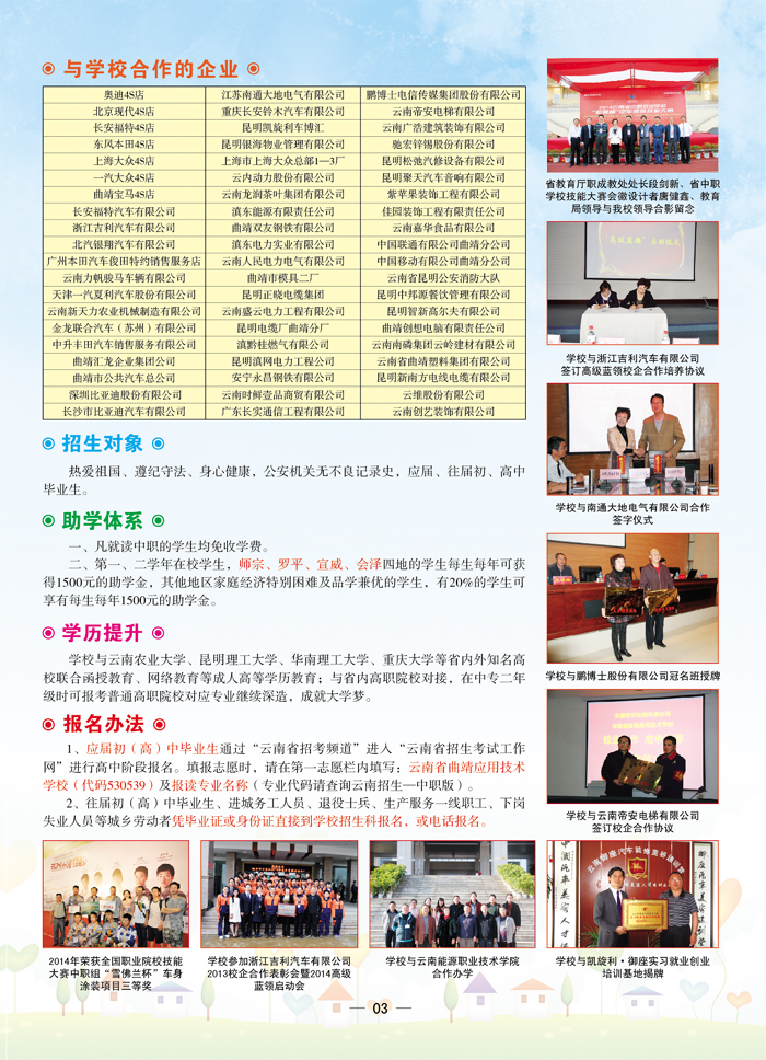云南省曲靖应用技术学校2015秋季学期中专招生简章