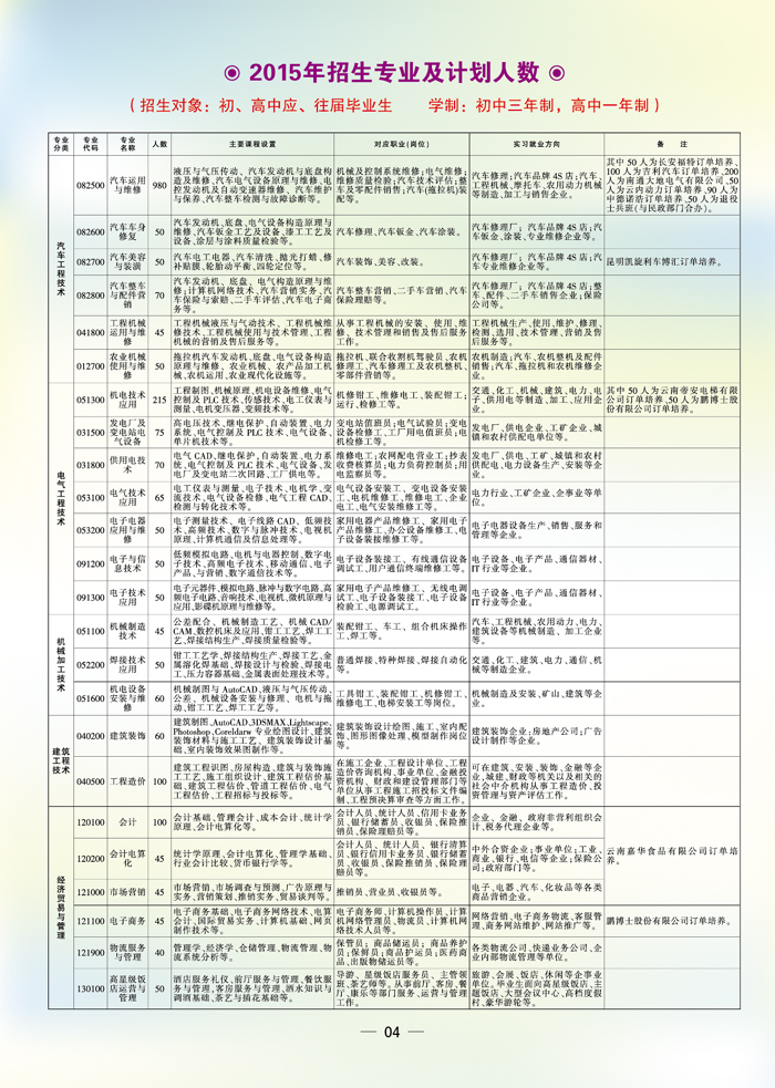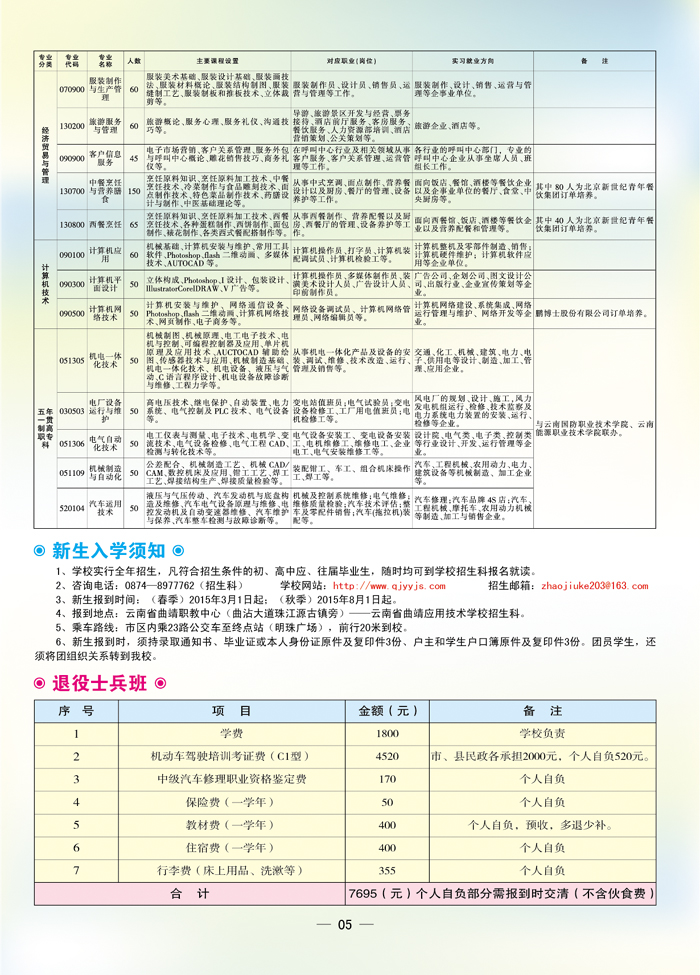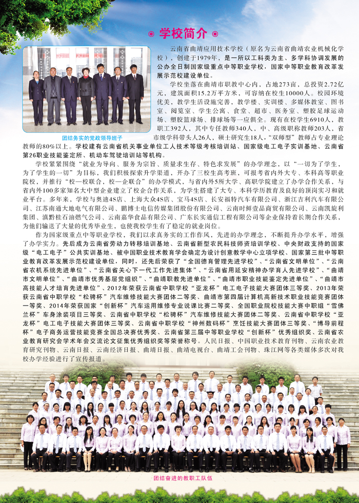 云南省曲靖应用技术学校2015春季学期中专招生简章