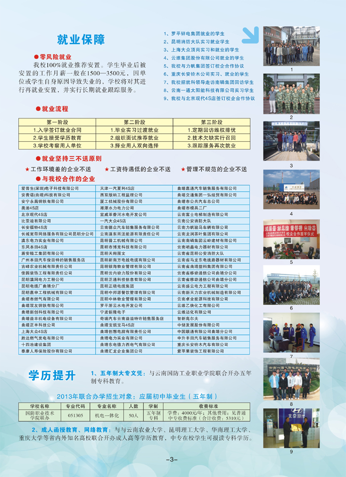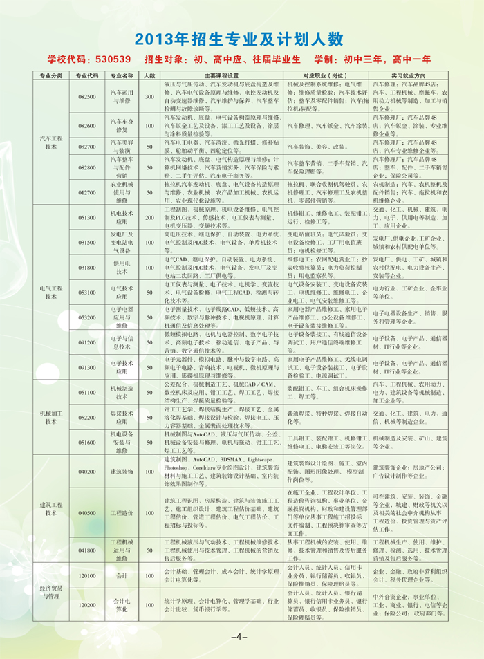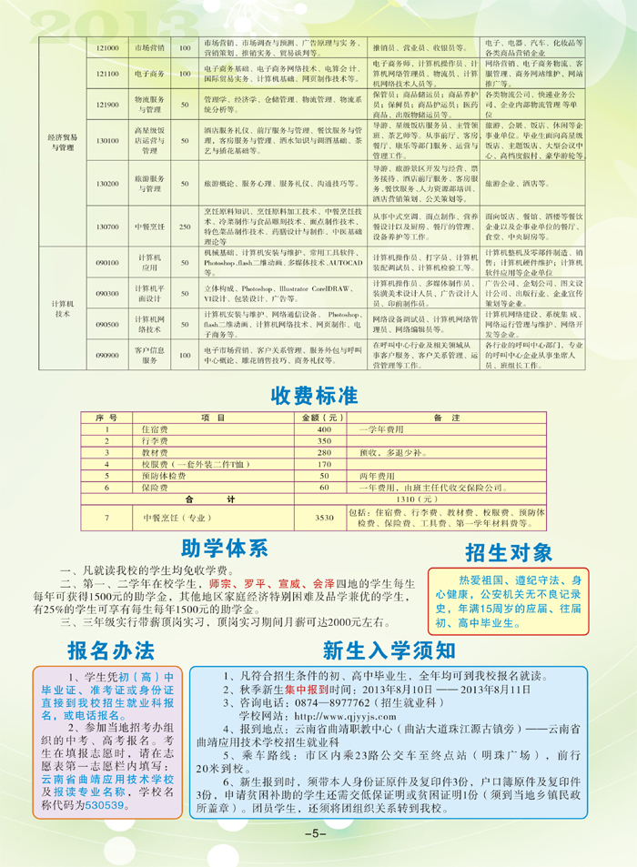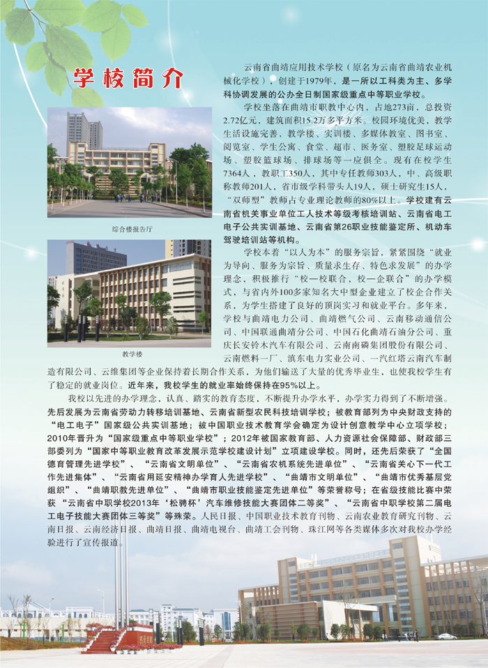 云南省曲靖应用技术学校2013秋季学期中专招生简章