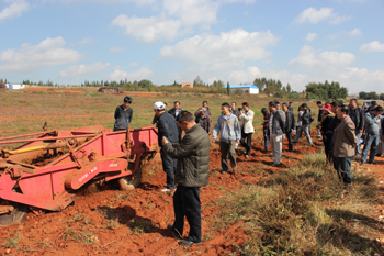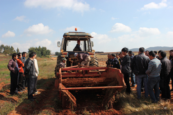 11月2日,成教科组织云南省新型农机师资培训班学员到沾益县大坡乡参观了云南诚兴农业发展有限公司——现代化马铃薯生产基地。公司王长宝董事长现场为学员介绍了马铃薯机械化播种、施肥、田间管理的优势,员工展示了现代化机械设备收获马铃薯的过程,培训班学员感受了机械化在提高农业生产率,土地产出率,增加农民收入方面所发挥的作用。
