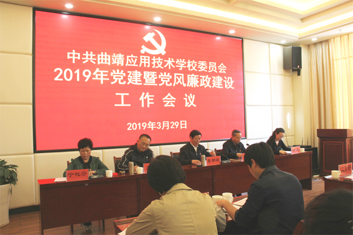 为深入贯彻落实全市教育系统党建暨党风廉政建设工作会议精神,进一步加强学校党建和党风廉政建设工作,3月29日下午,学校在会议培训中心召开2019年党建暨党风廉政建设工作会议。会议由学校党委副书记、校长王宗舜同志主持,学校党政领导班子成员、中层管理人员及全体党员参加此次会议。