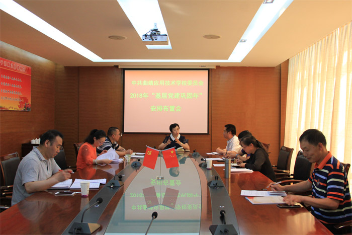 会议对2018年“基层党建巩固年”和党支部规范化建设达标创建工作进行了安排布置。党委委员、副校长徐敏同志带领大家学习传达贯彻了曲靖市“基层党建巩固年”实施方案、“基层党建巩固年”重点任务项目清单、曲靖市党支部规范化建设达标创建实施方案、《中共云南省委组织部关于印发<云南省共产党员“政治生日”制度(试行)>的通知》等文件精神。