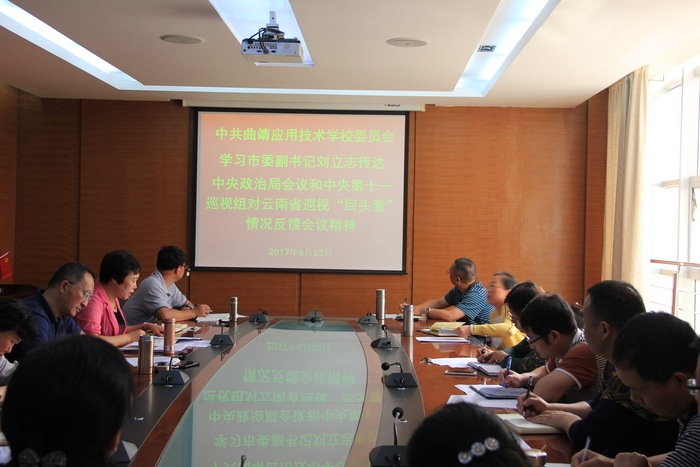 6月23日,中共曲靖应用技术学校委员会召开了理论中心组专题学习。会议由党委书记、校长吕庆芬同志主持,学校党政班子成员、纪委委员、支部书记参加了专题学习活动。
