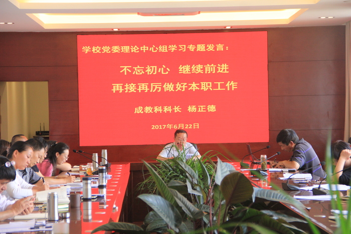 6月22日,中共曲靖应用技术学校委员会召开党委理论中心组学习专题发言会。本次专题发言以“学习《关于新形势下党内政治生活的若干准则》和《中国共产党党内监督条例》、《中国共产党党委理论学习中心组学习规则》和《关于县以上党和国家机关党员领导干部民主生活会的若干规定》”为主要内容。会议由校长助理徐敏同志主持,党委委员、工会主席和平江,办公室主任杨颖以及成教科科长杨正德相继作了专题发言,学校党政班子成员及全体中层管理人员参加了会议。