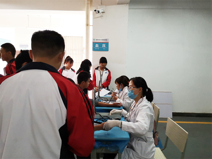 为及时、准确掌握学生健康状况,建立健全学生体质健康档案,保障学生健康成长,5月29日上午,学校邀请曲靖市疾控中心23位医务人员到校,针对我校2019年春招的283名学生进行健康体检。