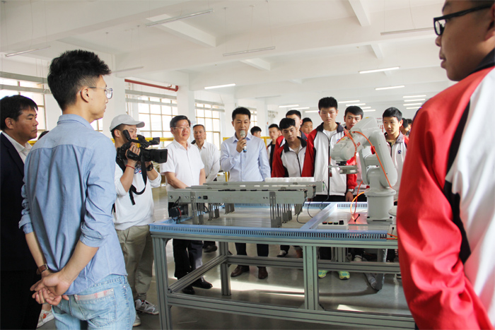 学校党委书记夏朝国同志,党委副书记、校长王宗舜同志、副校长刘星同志、ABB机器人(珠海)有限公司总经理王国超为实训基地揭牌,标志着我校智能制造实训基地正式成为ABB机器人(珠海)有限公司工业机器人实训基地。