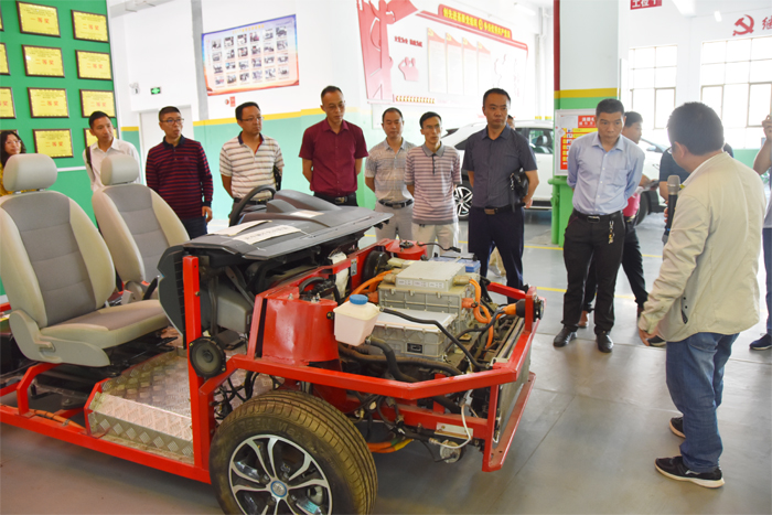 王校长对考察团一行的到来表示欢迎,并陪同考察团一行参观了学校汽车运用与维修实训基地、新能源汽车实训基地、电子商务实训基地、海魂硅藻泥实训基地、餐饮实训基地、学生实训课程开展情况等。行程中,王校长向考察团介绍了学校的办学特色——学校始终坚持“产教融合、校企合作”,不断强内涵、提质量,专业建设以社会需求为导向,为促进经济社会发展提供优质人才资源。