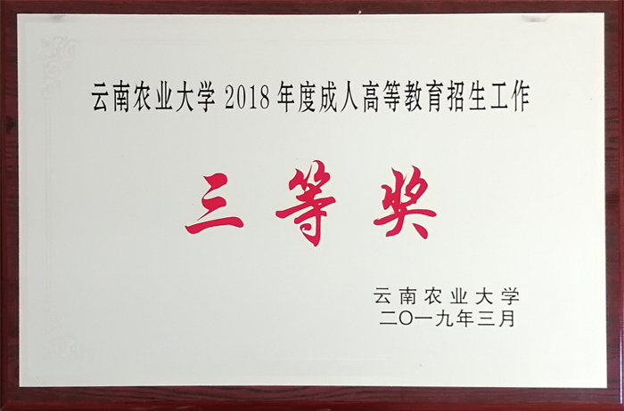 在4月18日召开的“云南农业大学2019年高等学历继续教育教学点工作会”上,我校成人函授教育再次受到合作高校云南农业大学的表彰,学校被云南农业大学评为“2018年度成人高等教育工作一等奖”和“2018年度成人高等教育招生工作三等奖”。(来源:成教培训科)
