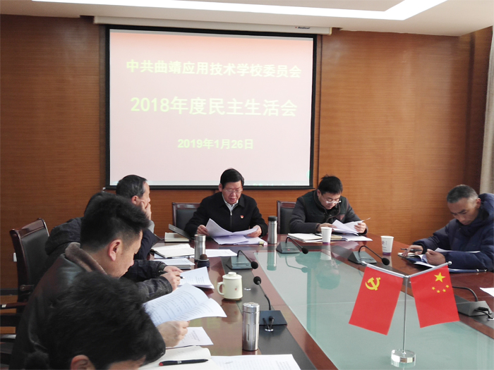 按照中共曲靖市纪律检查委员会、中共曲靖市委组织部《转发关于认真开好2018年度县以上党和国家机关党员领导干部民主生活会文件的通知》(曲组通〔2018〕69号)文件要求,经中共曲靖市委第六督导组(市教育工委第二督导组)指导并严格审核,报请市委同意后。1月26日上午,我校在学校党委会议室召开了2018年度民主生活会。学校6名党委领导班子成员参加会议,学校非党校领导、纪委委员列席会议。中共曲靖市委第六督导(曲靖市教育工委第二督导组)组长、曲靖市委教育工委副书记吴红霄同志,市纪委驻市委组织部纪检组主任科员朱策同志,市委组织部办公室主任科员马玉晖同志到会指导。会议由学校党委书记夏朝国同志主持。