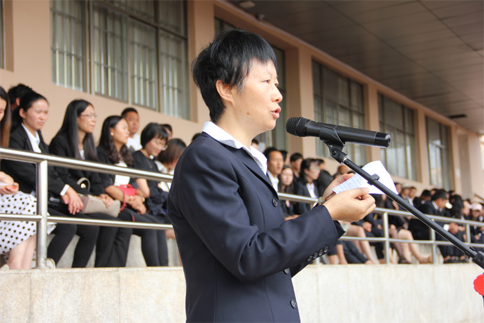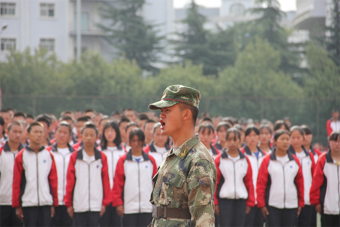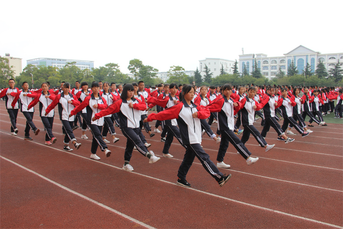 活动在庄严的国歌声中拉开帷幕。在激昂的检阅进行曲中,学校校长王宗舜同志检阅了新生军训方队,“校长好”、“为校争光”、“同学们辛苦了”,呐喊口号声响彻云霄,同学们精神抖擞,士气高昂,脸上洋溢着自豪和骄傲。检阅完毕,新生军训方队进行分列式、班级队列动作及军训方队表演。在军训方队分列式表演中,同学们踏着铿锵的步伐、呼着响亮的口号,威武雄壮地走过主席台,不时赢得观众阵阵掌声。