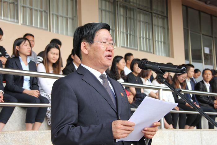 9月5日,我校2018年秋季学期开学典礼暨军训会操展演在学校足球场隆重举行。学校全体教职工及部分企业代表参加了此次活动。大会由学校副校长刘德华主持。