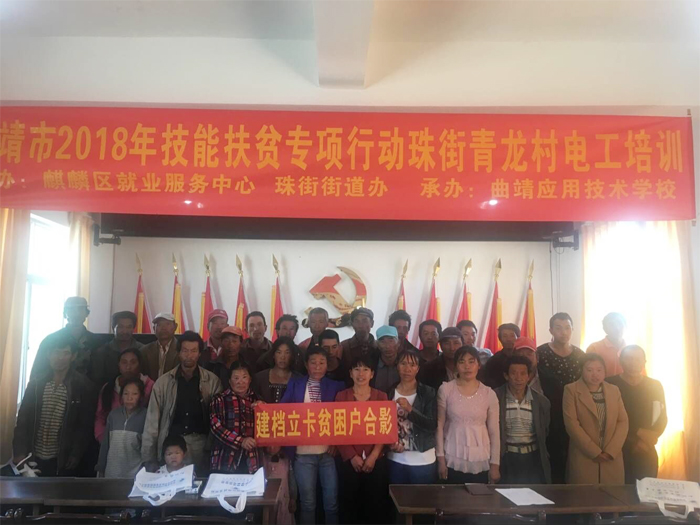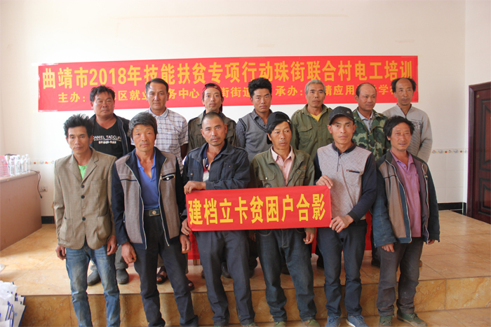 近日,由麒麟区就业服务中心和珠街街道主办、我校承办的精准扶贫电工培训在麒麟区珠街联合、青龙村委会开班。