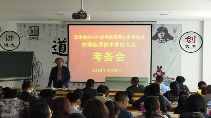 4月21日,我校迎来云南省2018年度考试录用公务员曲靖应用技术学校考点工作。本次考试在我校共设45个考场,1350名考生参加考试。