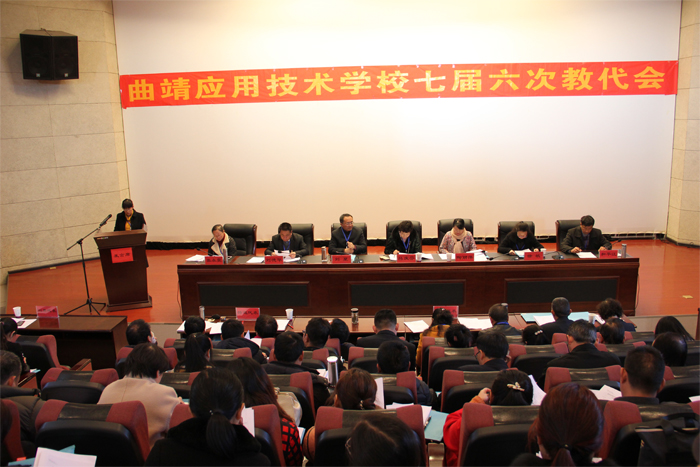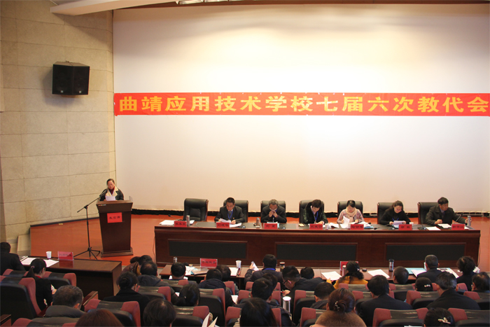 曲靖应用技术学校七届六次教代会于2018年1月8日、9日在学校召开,会期2天,会议应到正式代表57名,实到代表51名,列席代表11名,实到9名,特邀代表3名,实到2名。