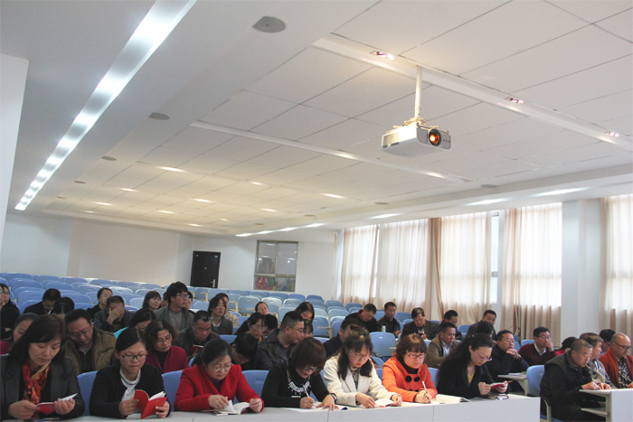 吕庆芬同志以《不忘初心 牢记使命 深刻把握新时代的历史方位》为题目,从深刻领会“新时代”的丰富内涵,准确把握我国发展新的历史方位,更好地肩负起新时代的历史使命方面对十九大精神,全面从严治党,推动学校快速发展等方面进行了专题辅导。