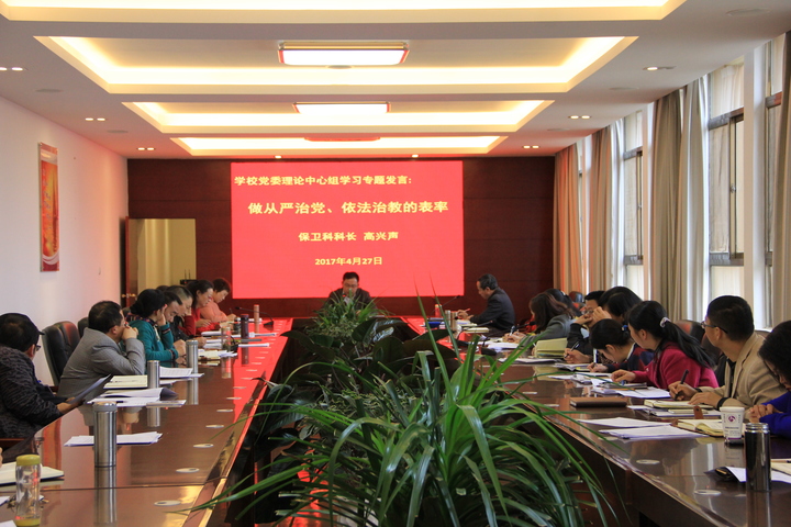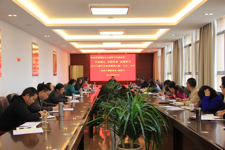 4月27日,中共曲靖应用技术学校委员会召开了党委理论中心组学习专题发言会。本次专题发言以“学习党的十八届六中全会、全国两会、省、市党代会精神,坚持全面从严治党,增强全面从严治党系统性创造性实效性”为主要内容。学校党政班子成员及全体中层管理人员参加了会议,会议由学校党委副书记、校长吕庆芬同志主持并作为班子的主要负责人带头发言,组织人事科科长郝燕飞、保卫科科长高兴声相继作了专题发言。