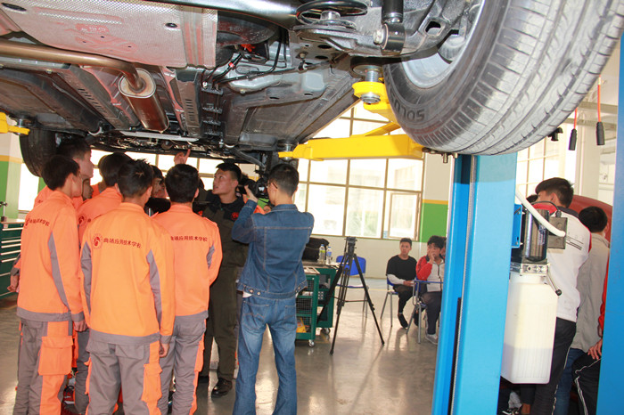 人民日报社记者在学校领导的陪同下,参观了学校汽车运用与维修实训基地、电工电子实训基地、电子商务实训基地、创客空间、南通大地电气有限公司。随后,人民日报社记者针对学校汽车运用与维修实训基地的设施设备及实训场景等进行素材收集,并采访了我校汽车运用与维修专业优秀毕业生费昌哲。