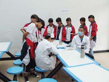 为全面了解我校春招生的健康状况,及时做好学生常见病、传染病的防治工作,进一步加强学生的预防性健康监护,建立健全学生健康档案,5月19日,学校教务科、政教科、总务科等科室联合为16个班710名学生进行了健康体检。本次体检由曲靖市麒麟同惠医院和学校医生具体负责,分别对学生的形体机能、内科、眼科、口腔科、外科等项目进行检测,并对学生进行了健康宣教,提出了有针对性的预防保健建议,本次体检组织得当,井然有序。(来源:总务科)