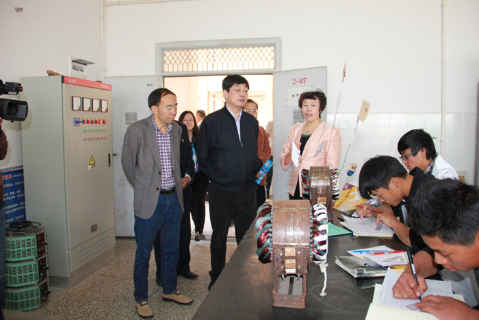 为贯彻落实全国职业教育工作会议精神,推动《职业教育法》修订,总结《教育规划纲要》中期实施情况,教育部开展职业教育改革发展情况专项调研。3月10日上午10:40,教育部职成教司副巡视员谢俐、教育部职业技术教育中心研究所教师资源研究室副主任李树峰一行四人,在云南省教育厅职成教处处长段剑新、调研员姚勇、曲靖市教育局职成教科科长李永苍的陪同下深入我校调研。