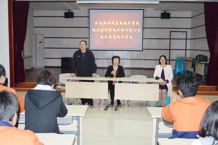 郭副校长与浙江吉利汽车有限公司留职学生讲话