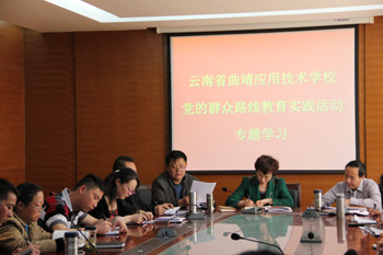 3月6日,学校组织全体中层及以上管理人员进行党的群众路线教育实践活动专题学习。学校党委副书记、校长吕庆芬主持,学校纪委书记周建平向全体中层及以上管理人员传达中央、省市有关文件及会议精神,集中学习了曲靖市委高书记在曲靖市党的群众路线教育实践活动动员大会上的讲话精神。结合市委及市委督导组的统一要求和部署,周书记要求各位领导及中层管理人员要带好头,认真按照学校制定的方案,抓实抓牢活动的三个环节。最后,吕校长强调:学校领导带头,全体中层管理人员跟上,每个人都要明确什么时间做、做什么、怎么做,完成规定动作,抓好自选动作,使活动真正成为学校改进校风、教风、学风及工作作风的有力武器。(来源:校办)