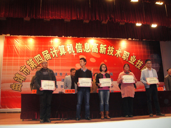2013年10月26日,学校组织师生参加了曲靖市人力资源和社会保障局主办的第四届计算机高新技术职业技能竞赛。来自全市31个单位共116名参赛选手充分展示了过硬技能。最终,我校李文指导教师获优秀指导教师奖;5名选手获“团体一等奖”的优异成绩,其中刘秋艳同学获个人一等奖;孙蓉映、王春艳、夏尤三位同学获个人二等奖;王孟秋获个人三等奖。本次竞赛集训时间短,从组织报名到参赛共计23天,经过计算机中心及指导教师的精心备赛,成绩优异。通过参加技能竞赛,进一步提高了学生动手能力和岗位适应能力,开拓了视野,同时也为学校争得荣誉。(来源:计算机中心)