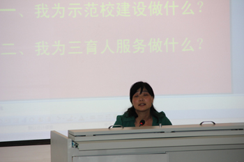为深入贯彻群众路线教育实践活动,学校于10月9日下午组织全体党员结合学校国家级改革发展示范校项目建设等工作实际举行主题发言与交流大会。大会的主题是“我为示范校建设做什么?我为三育人服务做什么?