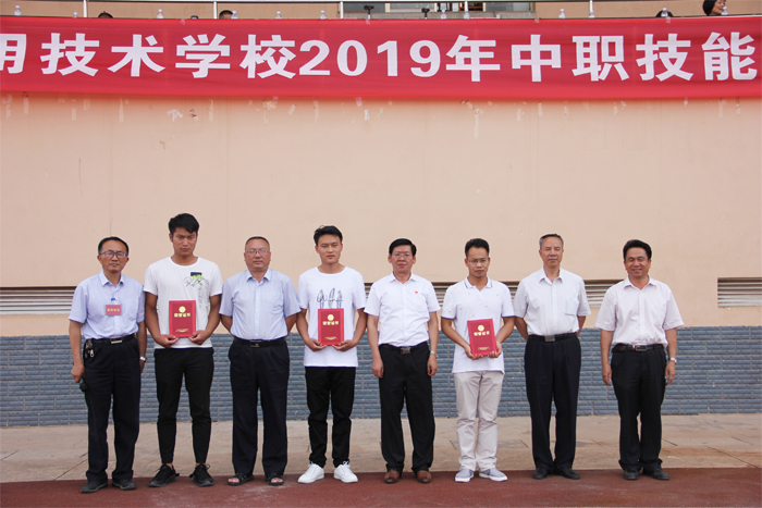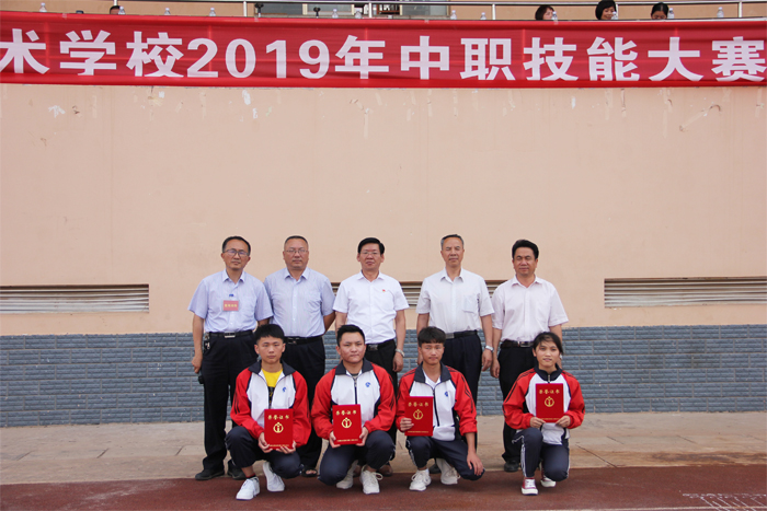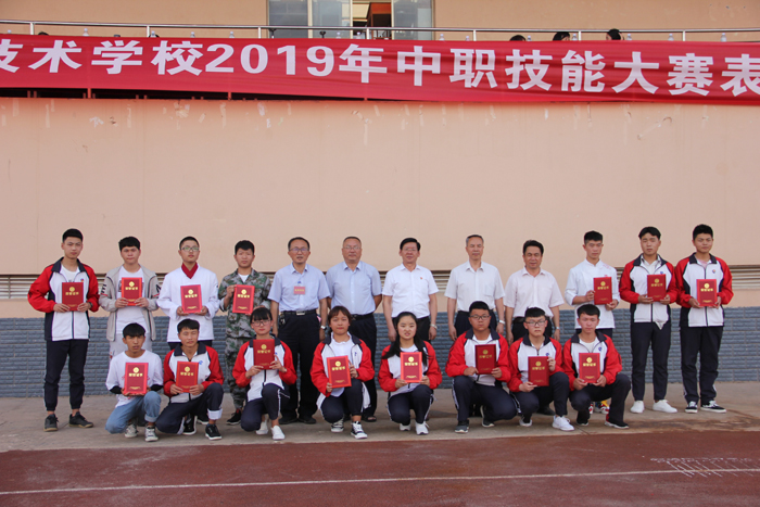6月11日下午,学校隆重举行2019年中职技能大赛表彰大会,学校党委书记夏朝国,党委副书记、校长王宗舜,副校长刘星,党委委员、副校长刘德华及相关科室负责人出席会议,学校参赛指导教师及全体学生参加会议。