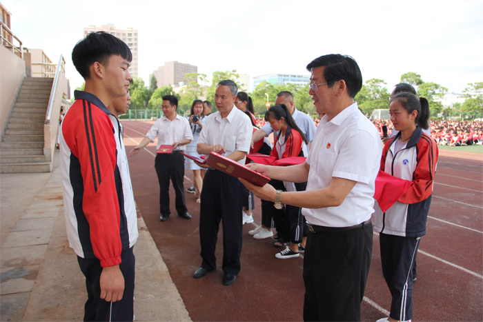 会上,王宗舜校长对学校在2019年中职技能大赛中取得的优异成绩表示热烈的祝贺并宣读国家级、省级技能大赛获奖人员名单。其中,在全国职业院校中职组技能大赛中,我校电子商务云南代表队从70支参赛队中脱颖而出,喜获三等奖;在云南省职业院校中职组技能大赛中,我校代表队参加汽车运用与维修、电工电子、中餐烹饪、计算机信息技术、职业素养、建筑测量六个赛项19个分项比赛,共斩获57个奖项,其中一等奖9人次、二等奖19人次、三等奖29人次。