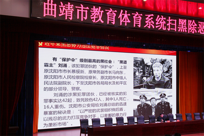3月21日下午,学校党委书记夏朝国,党委副书记、校长王宗舜带领扫黑除恶领导小组成员及学生代表,参加市教育局组织召开的“曲靖市教育体育系统扫黑除恶专项斗争专题培训会”