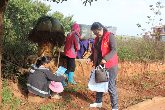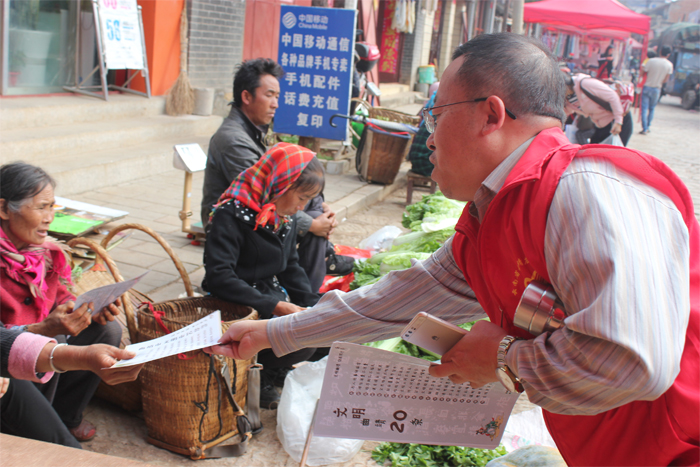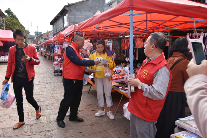 活动当日正值当地集镇,学校教职工志愿者深入社区集镇热闹区给居民志愿者耐心逐条讲解《曲靖市文明市民公约》、《文明曲靖20条》等相关宣传资料,并对居民宣讲文明知识,比如“垃圾分类不乱扔、文明经商不占道、红白喜事节俭办、公共场合不喧哗……”等,进一步增强居民文明意识,提升居民文明素养。同时,志愿者还结合学校专业实际开展职业技能培训项目技能知识,对有培训意愿的居民进行做好登记记录工作。