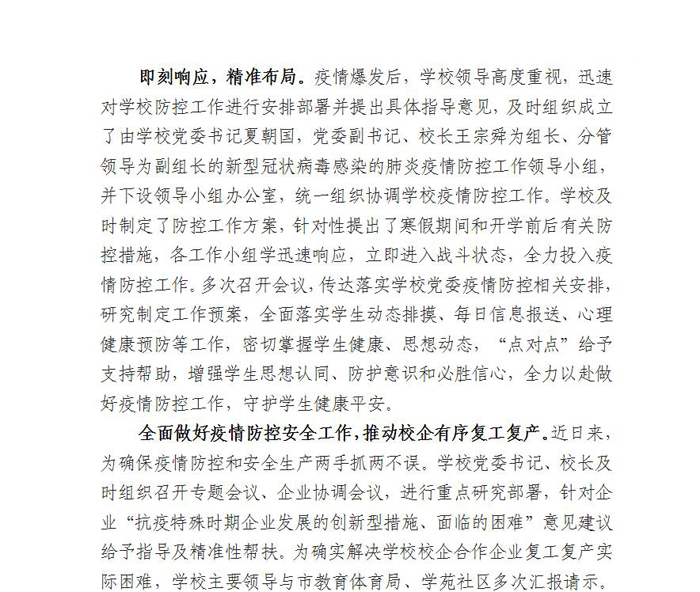 多措并举抗击疫情 上下同心共克时艰 学校各部门联动做好疫情防控