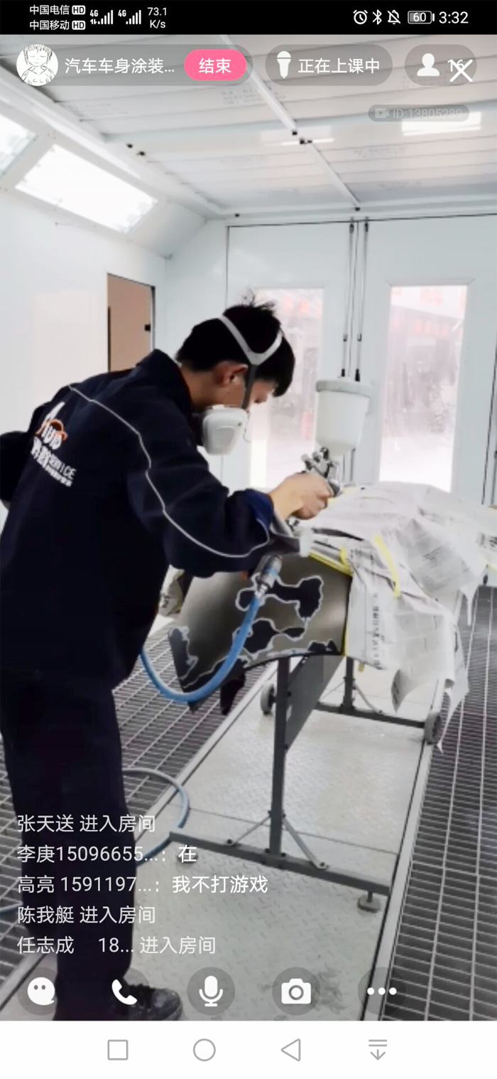 实训中心的高磊老师抖音直播《汽车车身涂装》实训课程。首先向学生介绍完整的处理车身涂装流程的知识点,再通过直播展示实操方法:车辆车门及内饰板拆装步骤,拆装要领,线束、连接螺栓、车门缝隙是否一致,拆装时的注意事项及个人安全防护等等,让学生们直观清晰的掌握知识点。