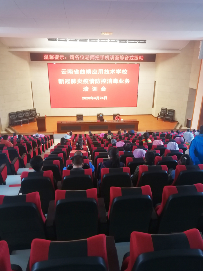 为增强学校后勤人员的健康安全意识,有效遏制病毒传播风险,保障师生身体健康。4月24日下午,学校邀请曲靖市疾控中心地方病与病媒防治科科长徐守先同志到校开展环境消杀专项培训。学校保洁绿化员工、食堂员工、超市员工、学校保安、政教科工作人员、教官、实训中心工作人员共107人参加培训。