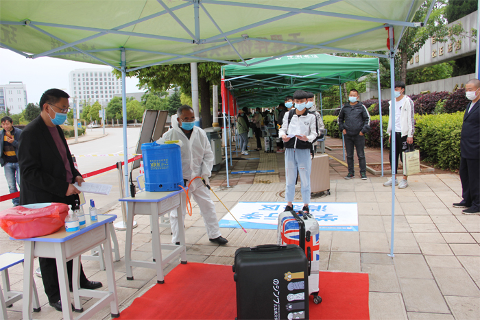 报到现场,所有新生均按要求佩戴口罩,在学校工作人员的引导下,保持安全间隔距离有序排队,测量体温、扫描“云南健康码”核验,学生本人填写《新生入学健康状况承诺书》,工作人员对行李进行全面消毒后方可通过专用通道进入校内,学校认真细致把好进校“第一关”。工作人员按照安全、热情、规范的工作要求,以高度的责任心,积极的工作态度,认真细致地做好各项工作。为新同学营造了热情、周到、安全、有序的迎新环境。
