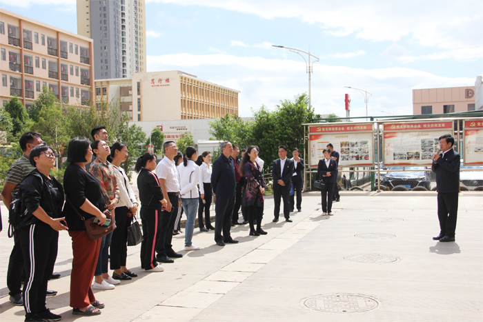 5月29日下午,西双版纳州委组织部赴曲靖考察中小学党建调研考察组一行14人到我校调研党建工作,市委组织部、市委教育体育工委领导陪同考察调研。学校党委书记夏朝国同志介绍了学校党建工作情况,党委副书记、校长王宗舜同志,党委委员、副校长徐敏同志等学校领导陪同介绍。