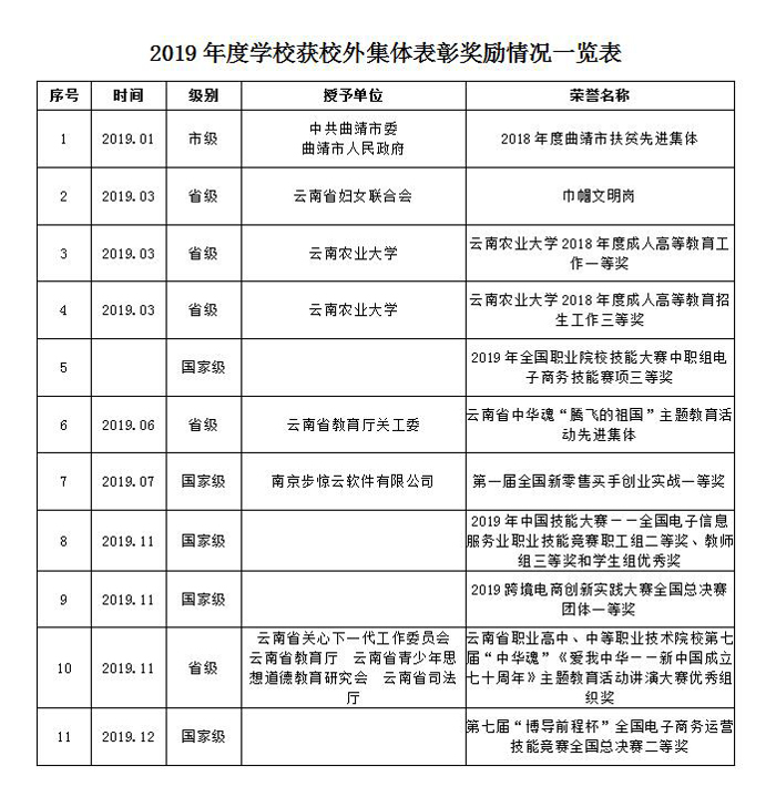 学校荣誉录(2019年度)