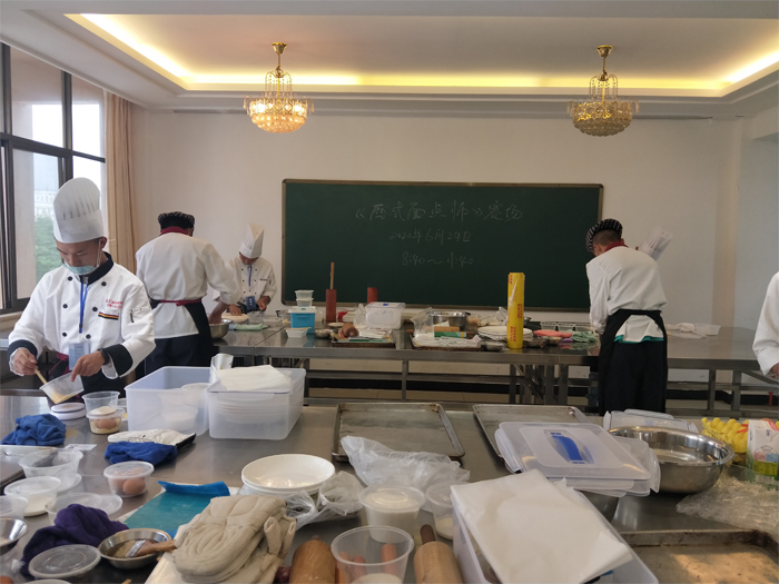 为贯彻落实《中华人民共和国人力资源与社会保障部国务院扶贫开发领导领导小组办公室》(人社函〔2020〕40号)和《云南省人力资源和社会保障厅关于选拔推荐选手及裁判员参加全国扶贫职业技能大赛的通知》等相关文件精神,做好全国扶贫职业技能大赛曲靖选手的选拔。6月24日,学校成功举办全国扶贫职业技能大赛云南选拔赛曲靖市初赛西式面点师的选拔比赛。共有来自全市五所中等职业技术学校的12名选手参加比赛。
