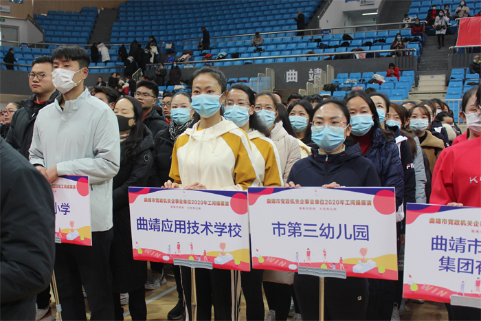 12月25日,学校组织20名教职工参加由曲靖市总工会、教育体育局及卫生健康委员共同举办的“曲靖市党政机关企事业单位2020年工间操展演”,本次活动由学校党委委员、副校长刘德华担任领队。