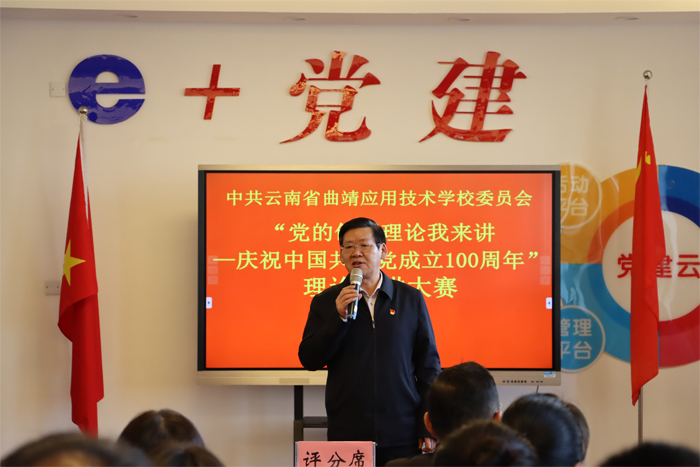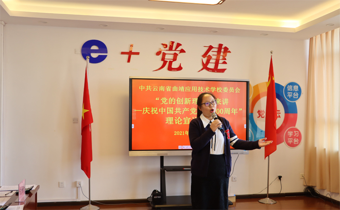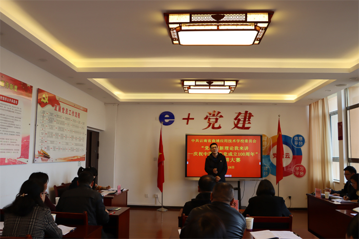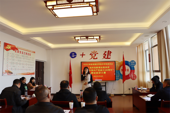 为充分展示中国共产党百年光辉历程、伟大成就和宝贵经验,深刻阐释中国共产党领导是中囯特色社会主义最本质的特征,是中国特色社会主义制度的最大优势,激励广大师生更加紧密地团结在以习近平同志为核心的党中央周围,3月24日下午,学校举行“党的创新理论我来讲——庆祝中国共产党成立100周年”理论宣讲大赛,全体党员参加了此次活动。