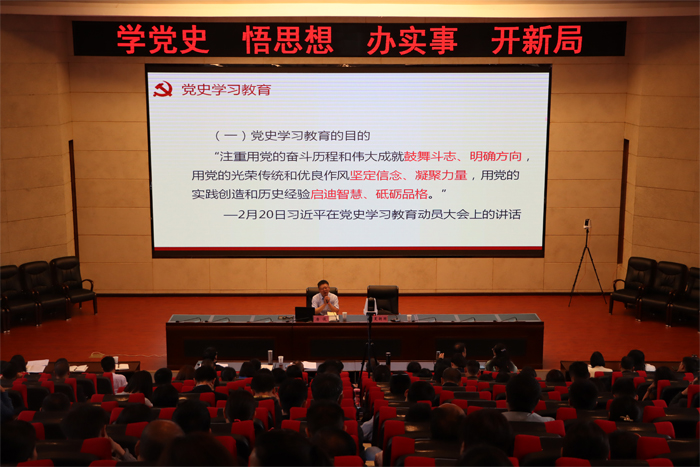 在报告中,唐俊老师首先结合习总书记关于党史的重要论述、习总书记在党史学习教育动员大会上的讲话精神及中央、省市关于党史学习教育要求,阐述了党史学习教育的目的、必要性、目标要求、重大意义及重点。他表示,历史是最好的教科书,也是最好的营养剂,只有讲好中国共产党的故事,才能传承好红色基因。