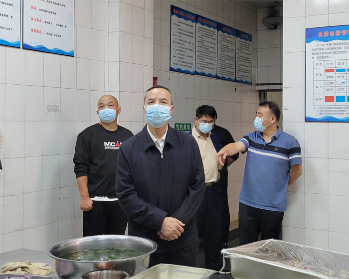 为保障广大师生的饮食安全,进一步提高学校食品安全保障能力和水平,认真落实领导陪餐制度,9月28日上午,学校党委副书记、校长王宗舜,党委委员、副校长郝燕飞一行对学校食堂安全、卫生进行了突击检查。