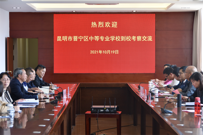 10月19日,昆明市晋宁区中等专业学校党委书记、校长李志坚一行13人到我校交流学习。学校党委副书记、校长王宗舜,党委委员、常务副校长郭海忠参加了交流学习座谈会。