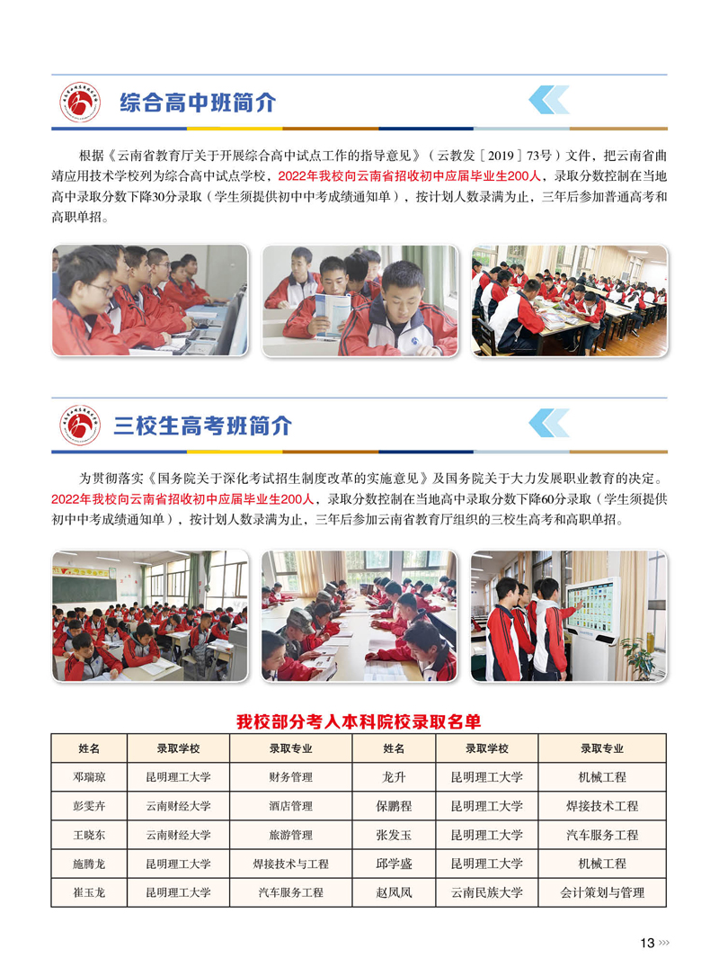 云南省曲靖应用技术学校2022年招生简章