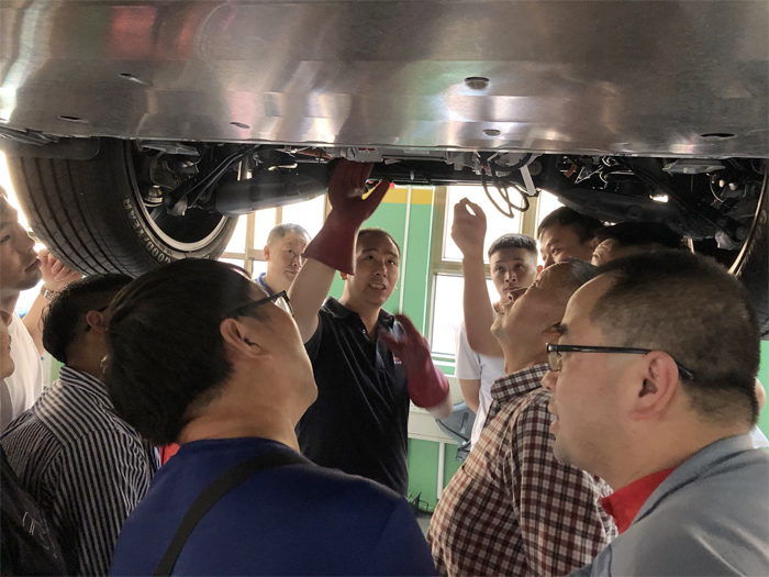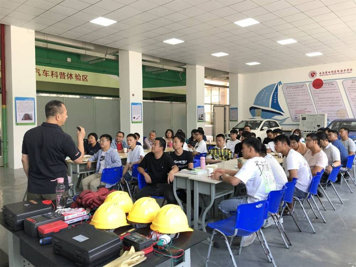 本次培训课程为“1+X”商用车销售培训考证和汽车新能源技术的培训两项内容。培训方式以讲授、讨论、实践操作为主,主要内容包括新能源汽车高压安全操作与急救、汽车驱动电机控制系统故障诊断与排除、商用车销售流程等方面的专业知识。培训中,培训教师还对学校新能源汽车实习车间的实训设备的操作流程和故障诊断进行演示,并针对学员的问题进行答疑解惑。