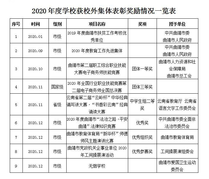 学校荣誉录(2020年度)