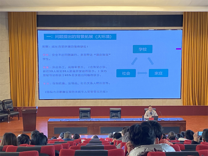 讲座围绕师生沟通概念及理论、如何提升教师沟通能力、分析现实师生沟通不畅的问题及原因、改善师生沟通技巧等多方面内容展开,深入浅出的讲解,引导教师要树立积极沟通理念,尊重学生的人格,理解学生的特点,倾听学生的心声,用爱为每位学生的梦想助力。