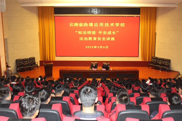 为进一步做好校园安全工作,增强学生法治观念和安全意识,提高学生的自我保护能力。3月6日下午,学校举办“知法明理·平安成长”法治教育安全讲座,讲座邀请麒麟区文华派出所民警舒睿警官作专题讲授,400余名学生代表聆听此次讲座。