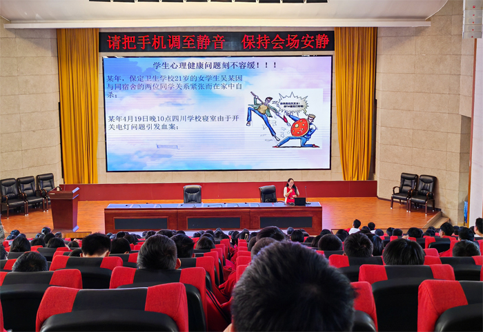 讲座上,陶老师以《蓄满“心”能量·开启“新”征程》为题,围绕同学们可能在生活环境、学习压力、人际关系等方面遇到的问题和挑战进行了分析与解答,引导同学们树立科学的健康观。接着,陶老师通过一个个鲜活的例子向同学们指出了学生普遍存在的心理问题,告诉同学们既要学会情绪处理,也要培养自己的兴趣爱好,并努力提高自学意识与自学能力,尽快适应新学期的学习生活。