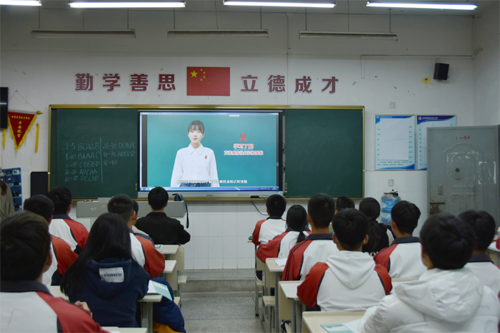 通过学生例会、宣传电子屏、国旗下演讲、主题黑板报、主题班会等方式,让学生们深入了解艾滋病相关知识,做到理性识艾、科学防艾,引导学生培养积极向上的生活态度,养成健康的生活方式,正视艾滋、关注艾滋、预防艾滋。同时,还组织学生登录“云南防艾”微信公众号开展青年学生防艾知识竞答。